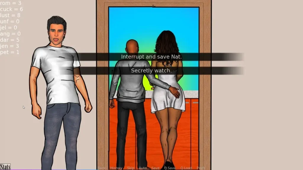 | Cuckold (Cuk) | A specific path where Ethan derives excitement from Natalie’s interactions with others. | Unlocks the cuckold narrative branch, including unique scenes and a completely different relationship dynamic with Darrel. |